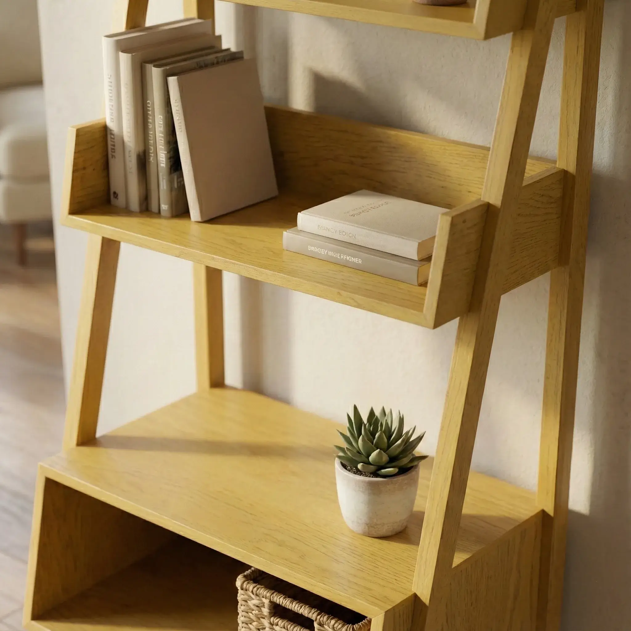 Tiered Architecture: Features five progressively spaced solid Shesham wood shelves, offering dynamic display heights for objects of varying scales.